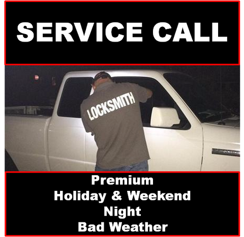 Premium Charge Added Onto Regular Service Charge for a trip made by a Locksmith to visit the location where work is to be performed during a holiday evening, extreme weather conditions, or outside of normal operating area.
